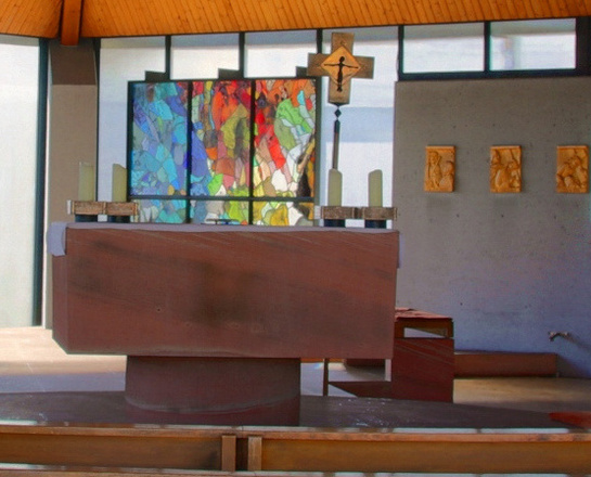 Die Buntfenster wurden 1999 von der Werkstatt für Glasmalerei, Hein Derix aus Kevelaer, nach einer Vorlage von Prof. Johannes Schreiter gefertigt und vom Würzburger Weihbischof Bauer eingewiehen.