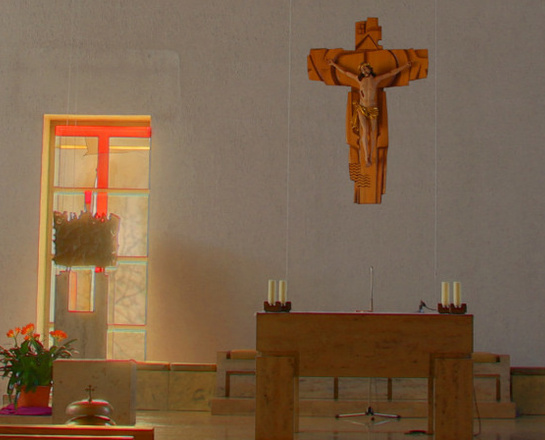 Sitzplätze und etwa 150 Stehplätze umfasst der Kirchenraum. Durch den großzügigen Chorraum ist es möglich, dass bis zu 50 Ministranten sich an hohen Festen um den Altar versammeln können.